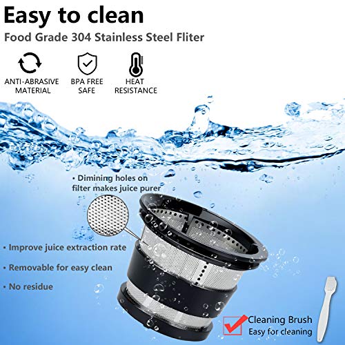 ✔ ALTISSIMO VALORE NUTIRZIONALE CON MOTORE A BASSA VELOCITÀ: la masticazione lenta può separare perfettamente il succo e la polpa, estrarre il succo di purezza superiore e preservare un valore nutrizionale più elevato. La nostra coclea gira a 47-60 RPM (la migliore bassa velocità sul mercato ora: fino al 90% di JUICE YIELD) che può preservare le vitamine, gli enzimi, i minerali, i minerali e le sostanze nutrienti da distruggere rispetto agli spremiagrumi centrifughi.