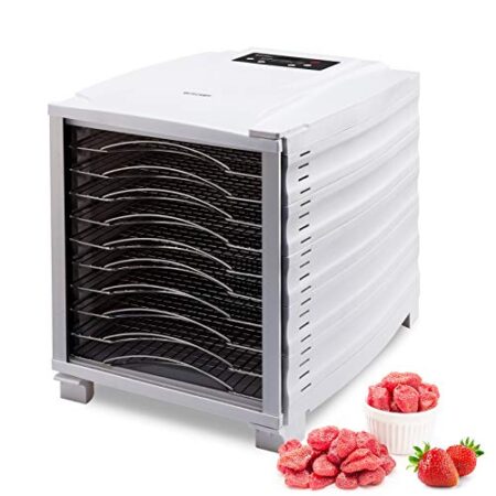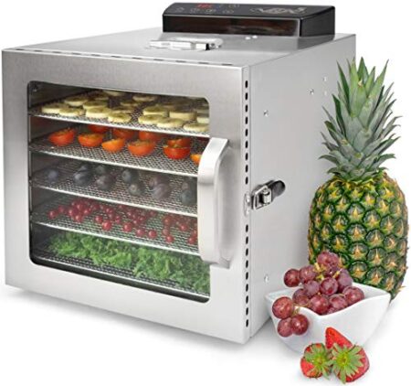 Termostato regolabile 35º-70º. Include una Guida per l’essiccazione per sapere il tempo e la temperatura di ogni alimento.10 Vassoi in ACCIAIO INOSSIDABILE e privi di sostanze tossiche come il Bisfenolo…