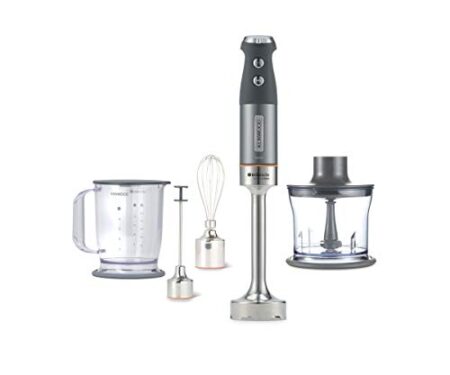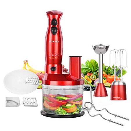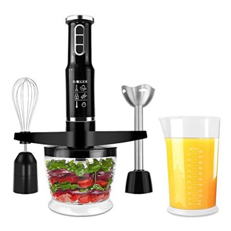 🍹 【MULTIFUNZIONE 4 IN 1】Frullatore immersione è dotato di un contenitore 600 ml e un chopper da 500 ml ,Con frusta e Con frusta frullatore ad immersione in acciaio inossidabile,Accessori…